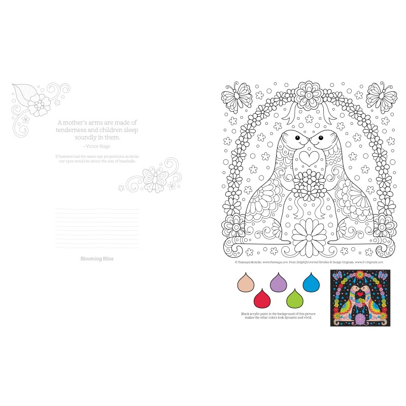 You’ll enjoy hours of relaxing creativity with these bright-eyed and bushy-tailed broods from bestselling artist Thaneeya McArdle. Includes handy tips to coloring techniques like patterning, shading, and blending, along with easy-to-use guided coloring pages, beautifully colored examples, and ready-to-use color palettes. Perfect for decorating with all of your favorite coloring implements, each illustration is printed on one side only of archival-grade, acid-free, 200-year paper. Perforated pages detach easily for gifting or display.