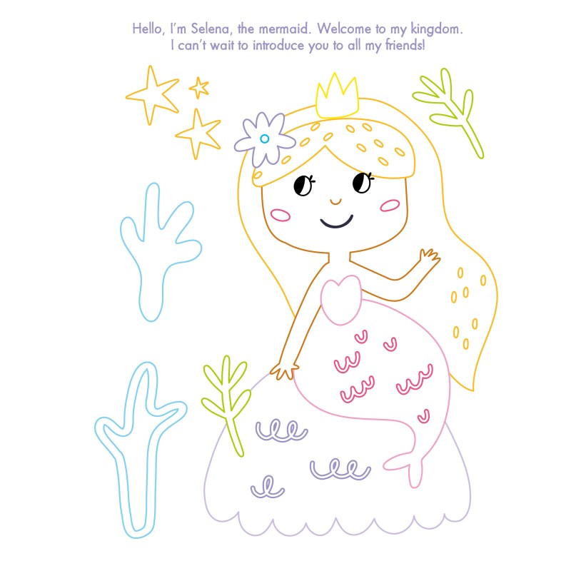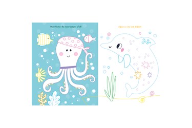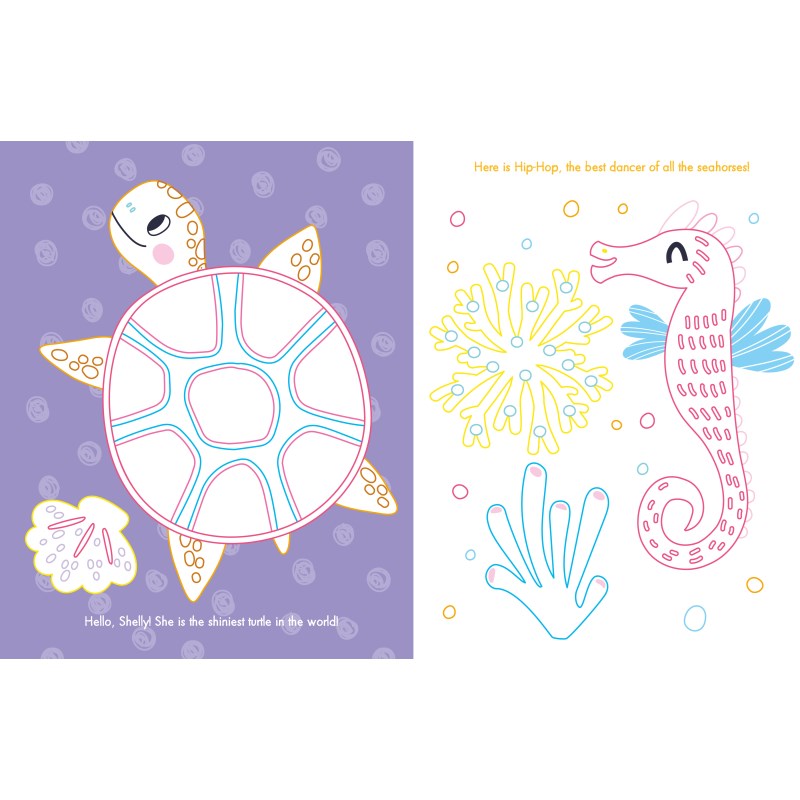 A charming coloring and sticker book for children ages 6-10. Sparkle Ocean Gemstone Sticker Book features 12 coloring pages with whimsical captions and 1,200 peel-and-stick stickers to accent and embellish each coloring page. The activity book is beautifully illustrated with colored line art drawings and illustrations, printed on high-quality paper. The book follows the story of Celene the mermaid and her ocean friends, Hector the octopus, Lorette the dolphin, Celestin the shark, and Ombelle the jellyfish. Detachable pages for displaying. Soft cover, 28 pages, 8.5 x 11 inch (21.6 x 28 cm).
