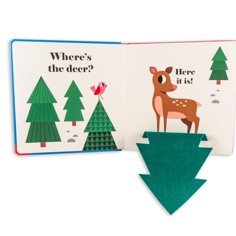 Five beautifully illustrated spreads show a series of friendly woodland animals hiding behind bright felt flaps. A mirror on the final spread makes for a satisfying ending to the book’s search-and-find inquiries. (Where are you? There you are!) A perfect book to share with very little ones. Part of Swedish designer-illustrator Ingela Arrhenius’s best-selling felt flap series, which has sold over 2 million copies. Board book, 10 pages, 7.1 x 7.1 inch (19=8 x 18 cm).