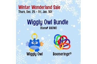 Pull owl down and release for vibrating action, as owl retracts upward. Attach additional Boomerings links to extend the action & for on-the-go engagement. Plenty of links to take along other baby toys as well.
