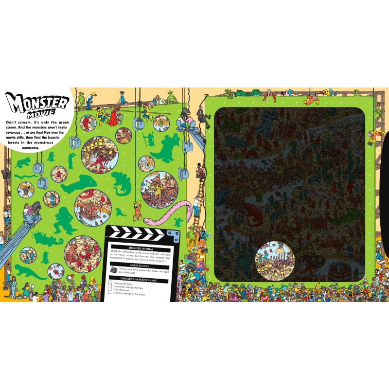 Follow Waldo and friends as they wander through film-studio sets and out on location in this sensational search-and-find adventure. With the help of the enclosed spotlight searcher, pan across a variety of movie-related scenes—from scary science fiction to monster fantasy, cozy costume drama to historical epic, sporting glory to a glittering awards ceremony in search of Waldo, his supporting cast of pals, and more.