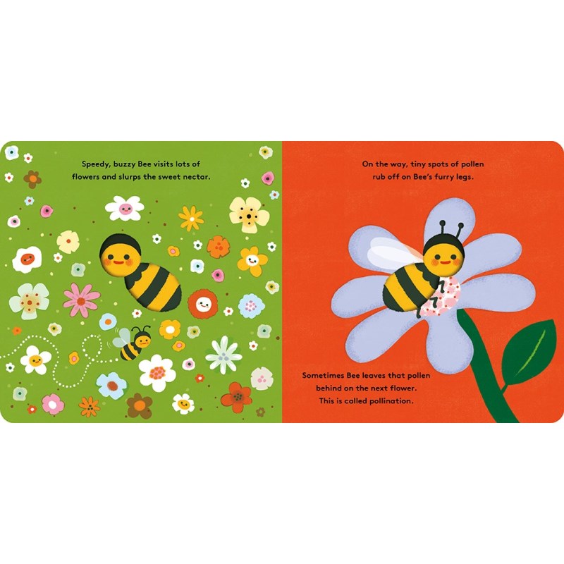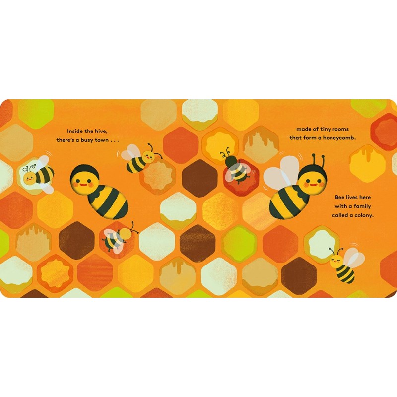 Follow along as Bee sets off pollinating plants and returning home to its hive in this beautifully illustrated board book for the very young. From flower to flower, busy little Bee collects nectar, pollinating blooms along the way before returning back to the hive where the rest of the colony lives. Between collecting nectar, making honey, and helping the queen, the honeybee’s extraordinary life is on display in this fun, informative board book. A die-cut throughout the book emphasizes how nature is full of changes, and readers will love learning how each season brings something different for these hardworking pollinators. Board book, 26 pages, 7.1 x 7.1 inch (18 x 18 cm).